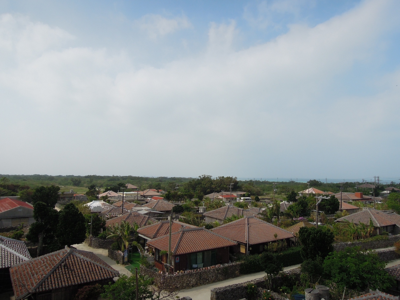 昔ながらの沖縄の風景が今も変わらずに残っています。ほとんどの赤い瓦屋根の上にはシーサーがいます。民家は石垣に囲まれていて、家々の間には白砂の道が続いています。ハイビスカスやブーゲンビリアなどの南国の花々があちこちに咲いていて町の風景に映え、美しいです。