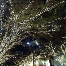 背後の店舗の明かりや走行する車のヘッドライトの光も相まって一帯がシャンパンゴールドに輝いているようで圧巻でした。