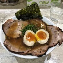 お椀から溢れるチャーシューは香ばしくて美味しい!