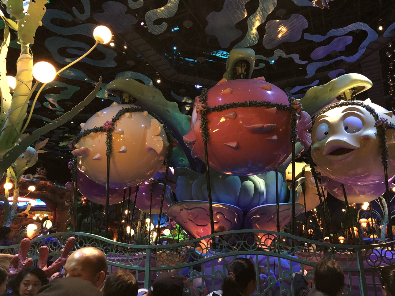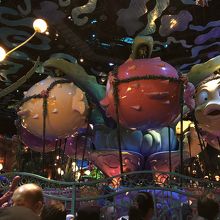 マーメイドラグーン内にあるアトラクションのひとつです。小さなこども向きのものが多いのでこのあたりは子どもたちが多いです。平日でも30分待ちだったのでわりと人気なんでしょうか。3歳のこどもも怖がらずにでも少しドキドキしながら乗ることが出来ました。