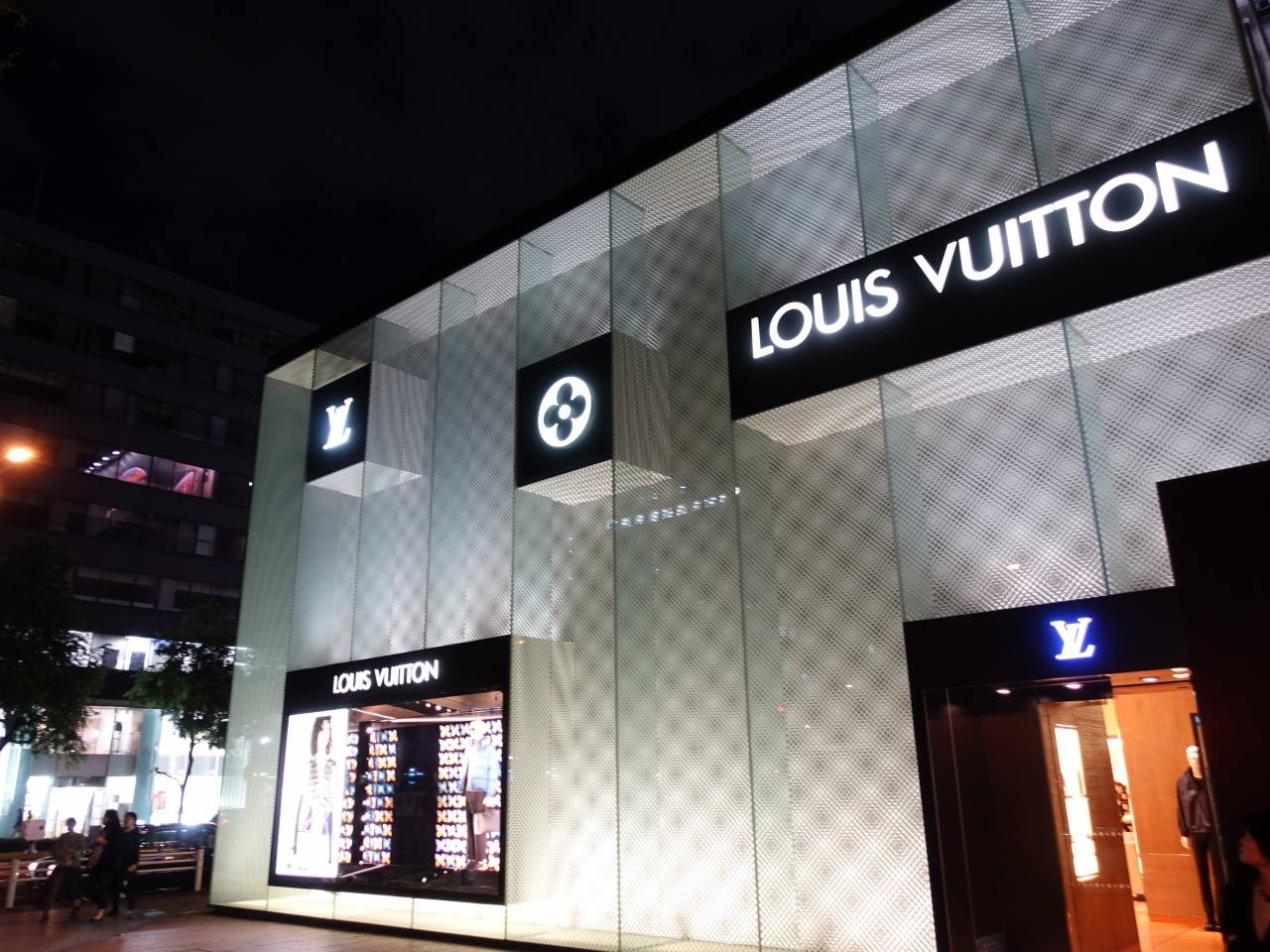 「ルイ ヴィトン (名古屋栄店)」は、名古屋の超一等地、久屋大通りと錦通りの交差点にあります。ただでさえ注目を集めるロケーションに加え、建物の大きさ、そして夜空に真っ白に光る外観と、目立ち方が半端ないです。