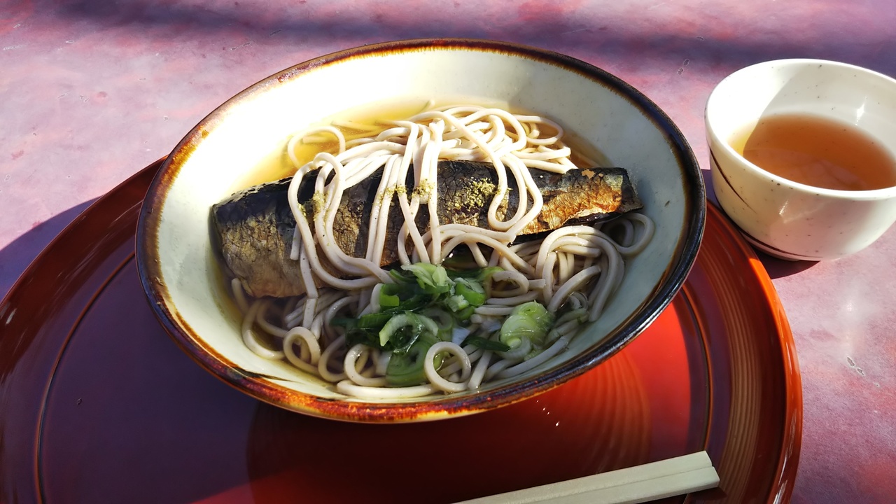 神護寺のお参りが終わり、参道を下っているとありました。天気がよく、屋外に席があり、毛氈を敷いた茶店のような感じでした。紅葉を眺めながら食事ができました。京都らしく、ニシンそばを頼みました。雰囲気も手伝ってなかなかよかったです。