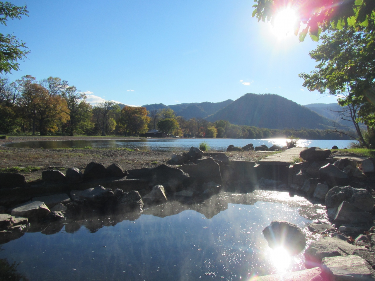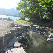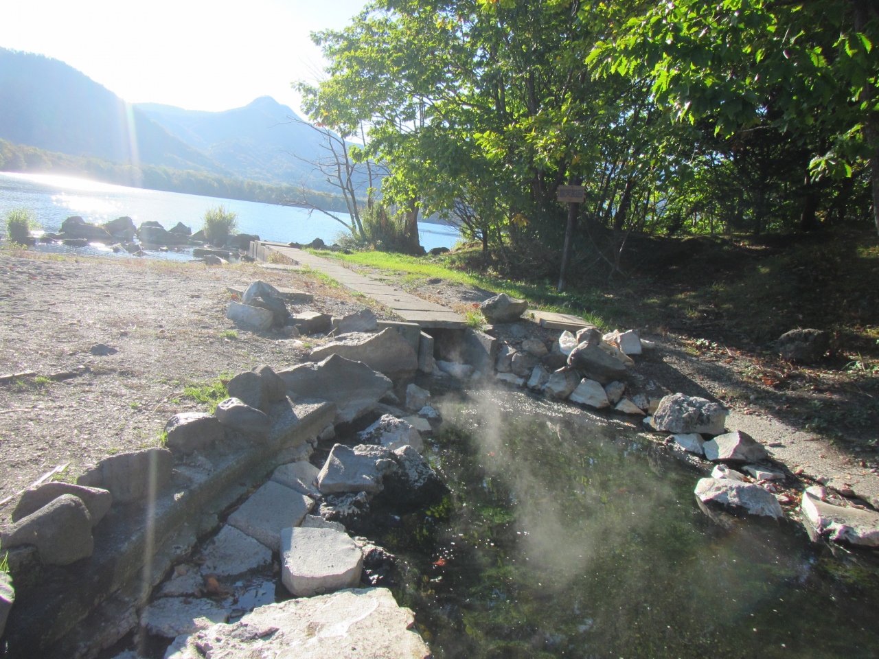秋の休日に訪れたところ、和琴半島の駐車場の横で、多くの人が訪れる横に湧く露天風呂でした。