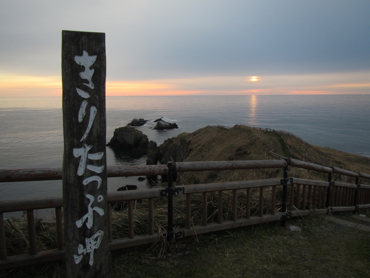 日の出は晩秋に訪れたところ、岬の先端方向とはズレたやや南側から昇ります。