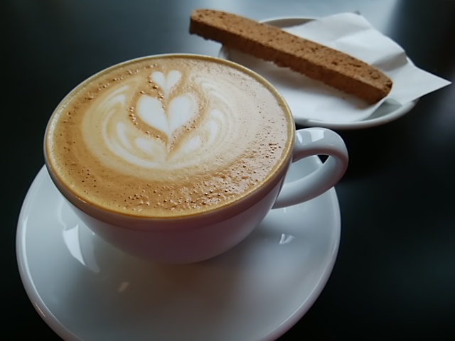 「カプチーノ(シングル)」430円(税込)と「ビスコッティ」200円(税込)を注文。間違いのない組み合わせです♪
