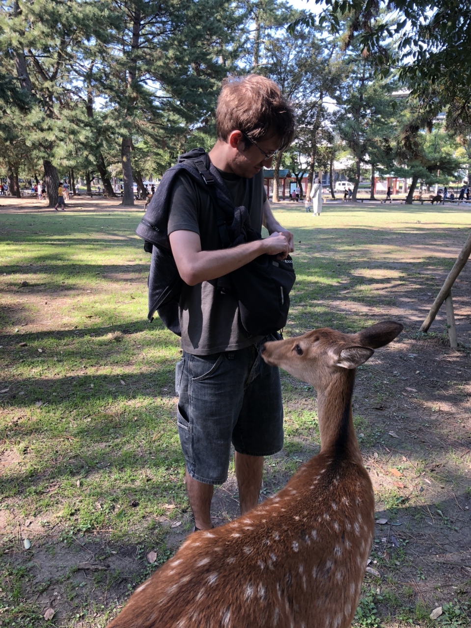 しか、可愛いです。えさをあげるときちんとおじぎしてくれるんですよね~。かわいい上に礼儀正しい。ただ、駅でしかが増えすぎたので鹿カレーを販売してるというパンフレットをもらってショックでした。ほんと、人間のほうが腹黒いです。