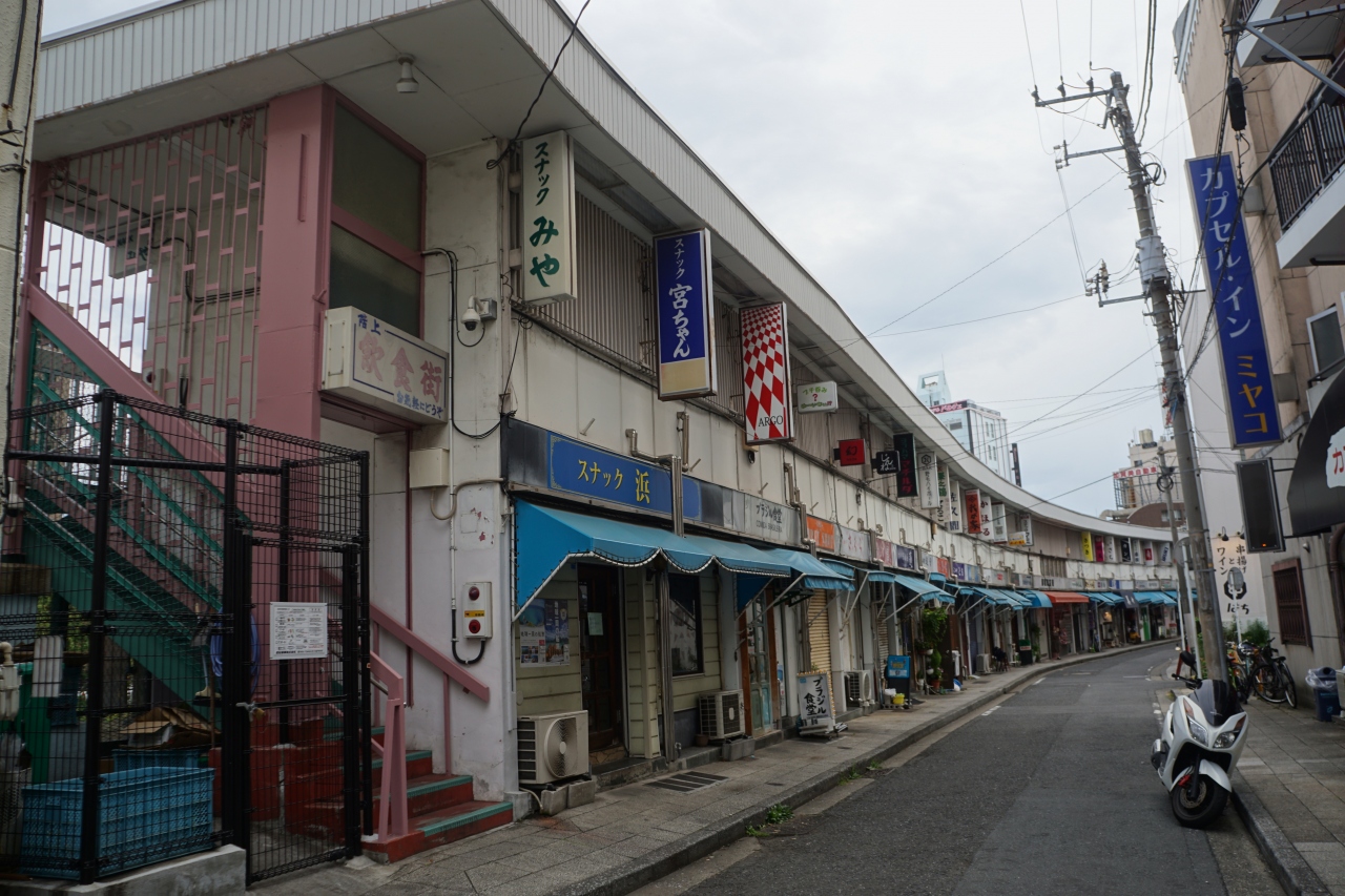 都橋商店街は、野毛の商店街の少し先。元々は東京オリンピックの時に、野毛本通り沿いの露店や屋台を集めたところだったようですが、今では居酒屋やバーが入居するアパートのようなレトロな建物が迫力ある眺めとなっています。日中に眺めただけなので、夜の顔は見ていませんが、通りに沿って少し湾曲した形なのも面白いと思います。