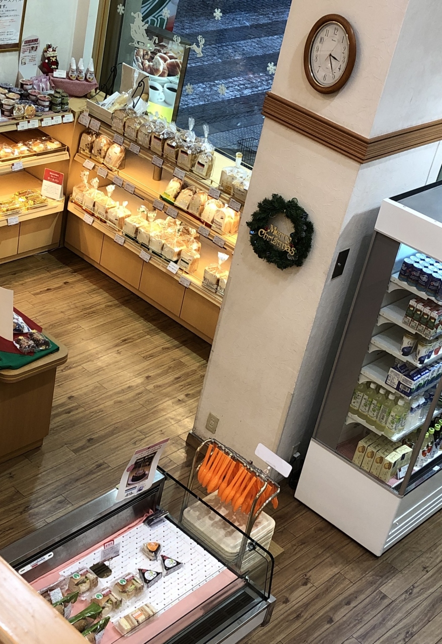イートインのスペースは簡易なものではない。ココのイートインスペースは、吹き抜けの二階に広くて ゆったりしたスペースが確保されている