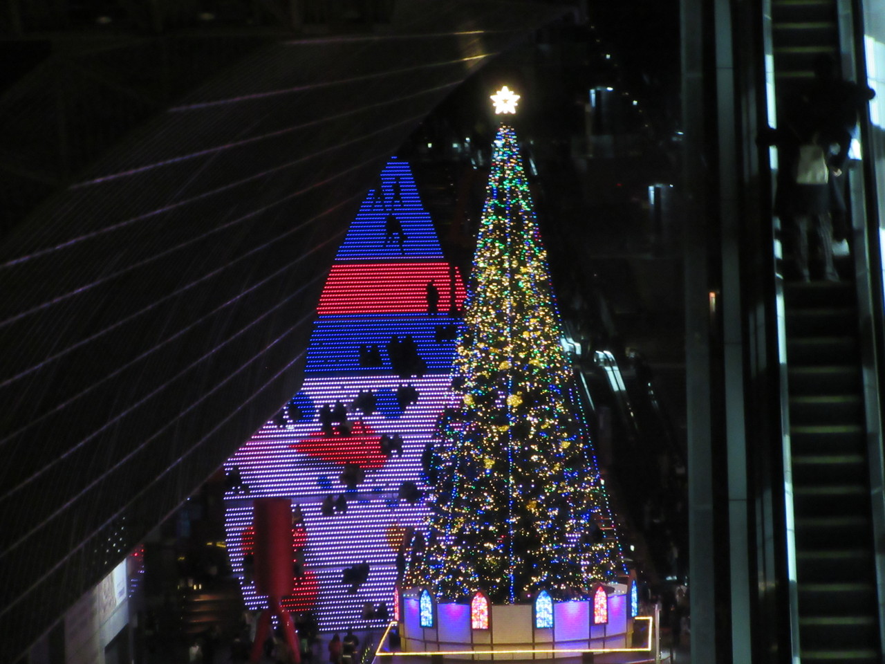 大階段には人がうじゃうじゃ座っているので、近くから見ると絵柄がいまいちわからない・・。少し離れてみたり、宿泊先のグランヴィアホテルから見てみたり、いろんな角度から眺めてみました。京都らしい絵柄や、かわいいクリスマスバージョン。素敵な演出です。人がいない時間帯も作ってほしいなー。
