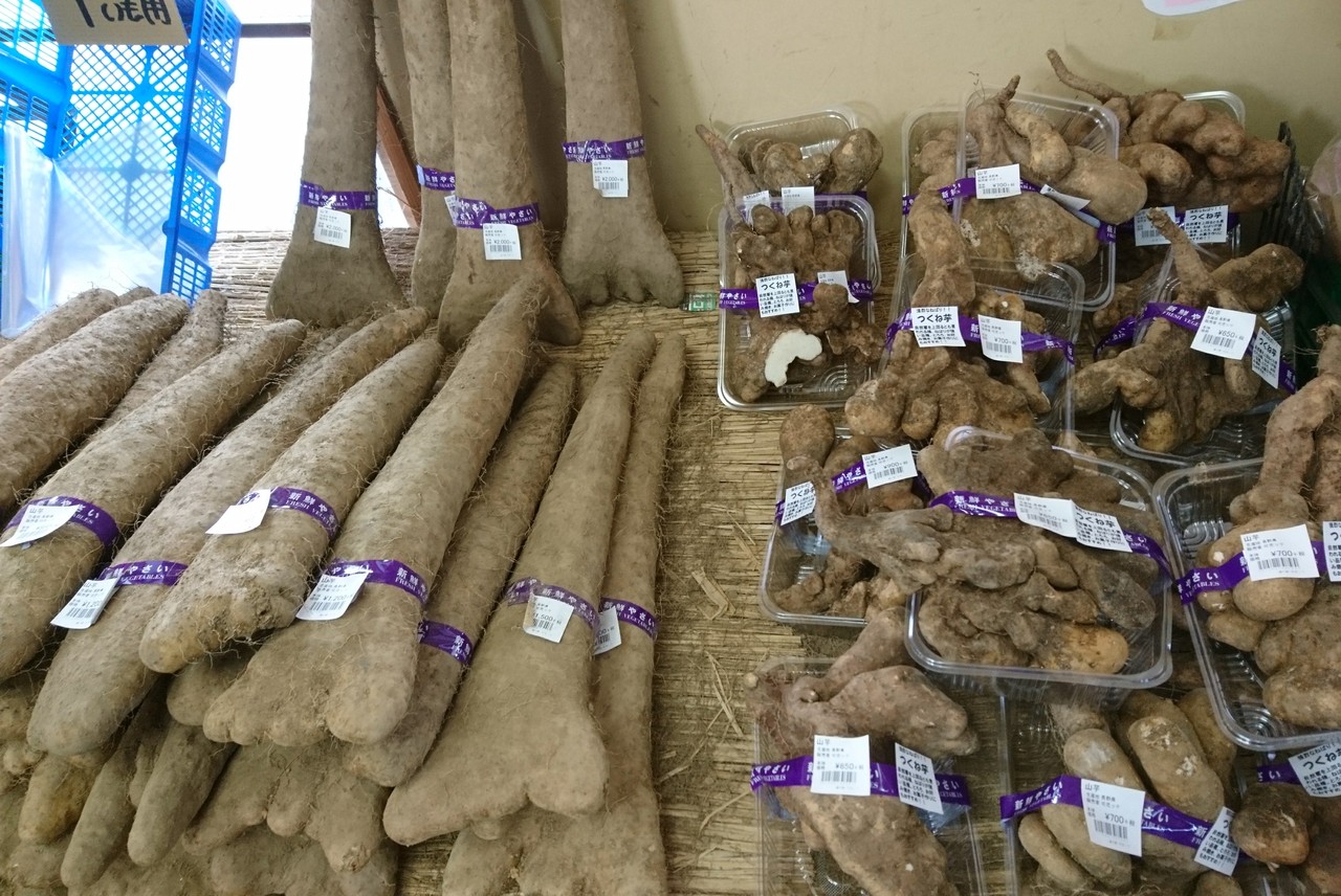 この時期の旬な自然薯や大和芋類が山のように販売していました。