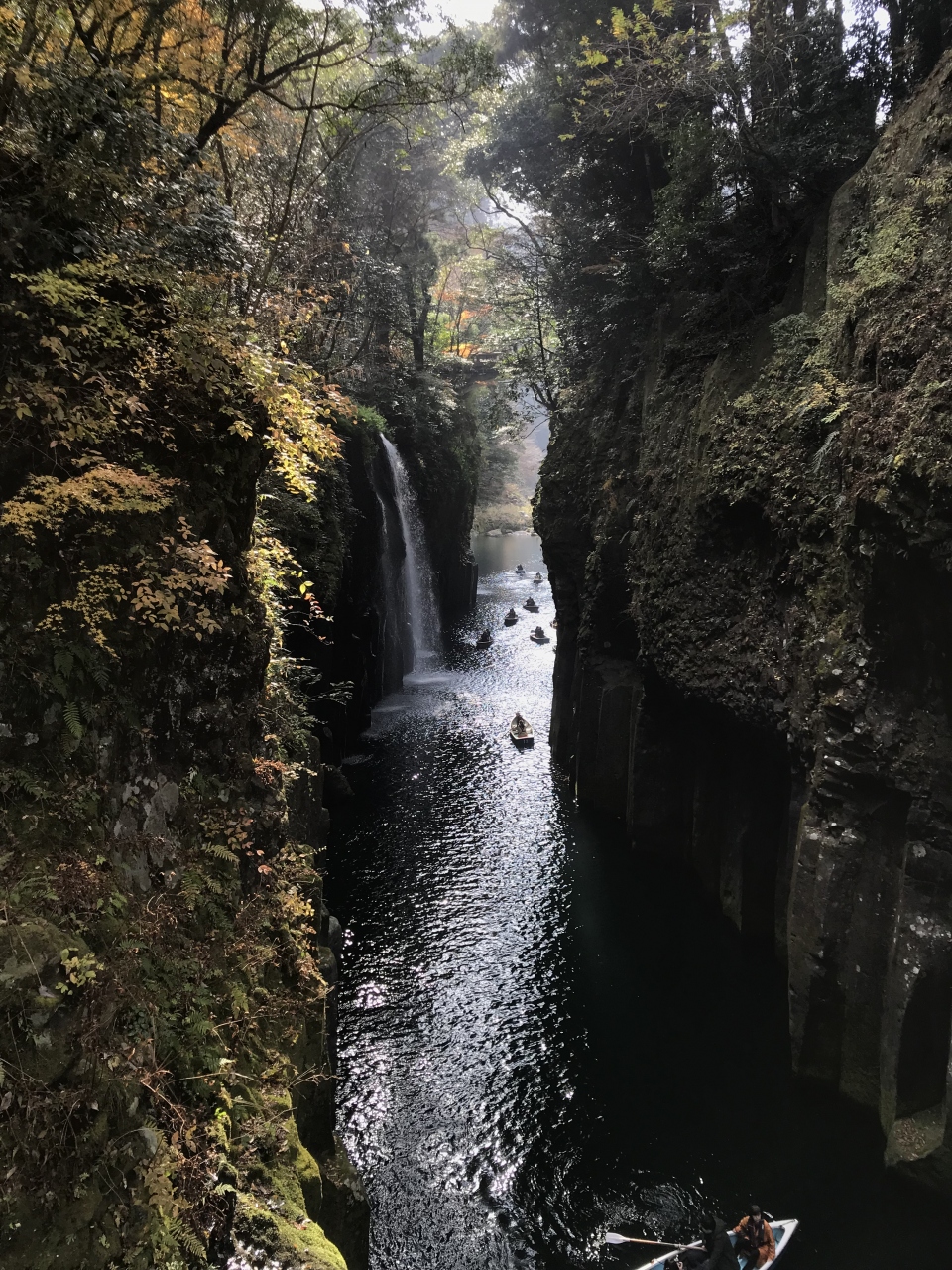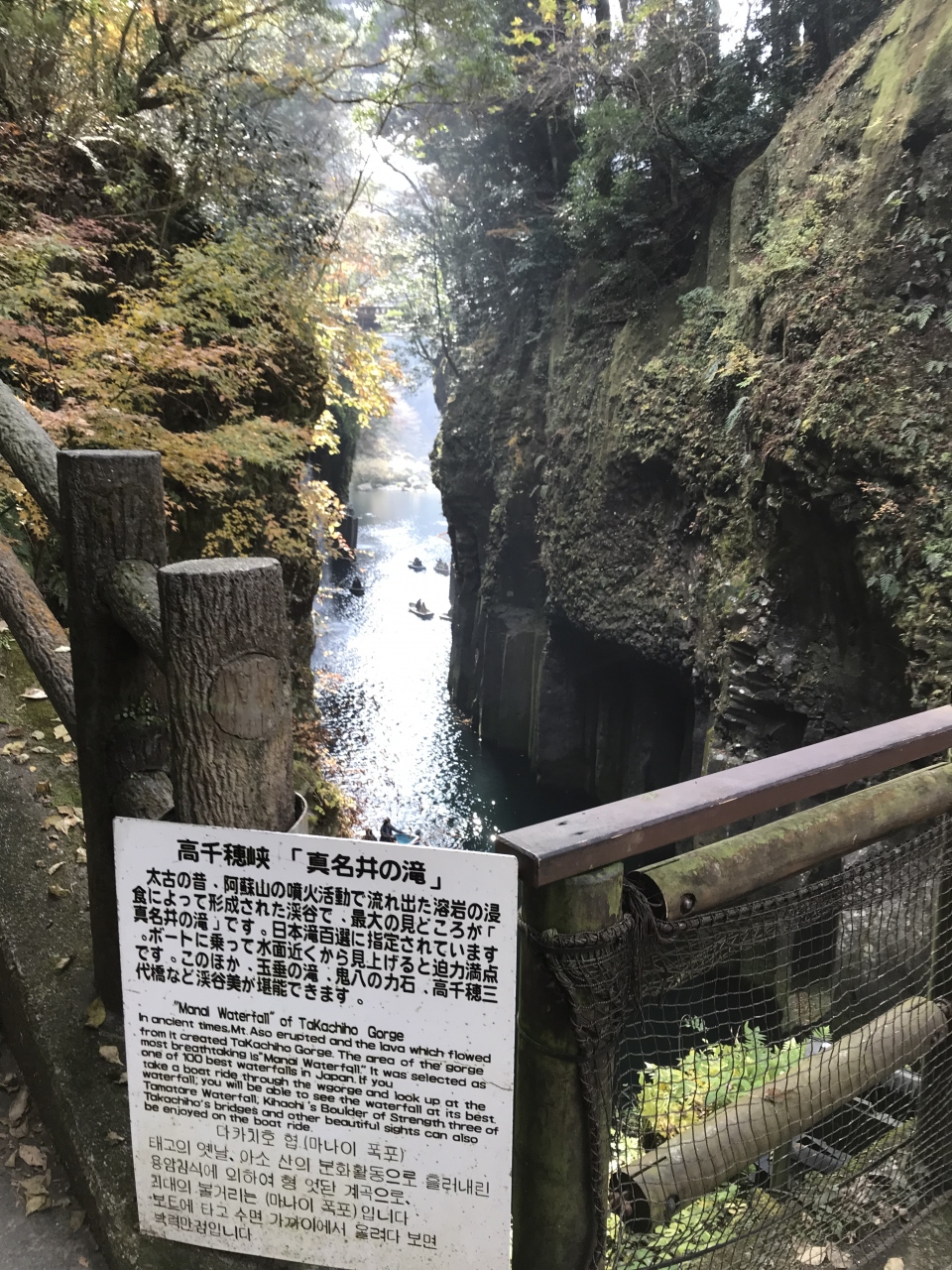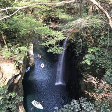 高千穂峡の一番の見どころです。よくパンフレットやガイドブックなどで見られる写真は、滝見台というポイントから撮影できます。落差もあり美しい滝です。行きかうボートと併せて綺麗な光景でした。遊歩道を渡り切って、滝見台とは反対側にある橋から見る景色も良かったです。