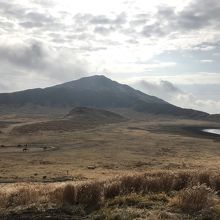 烏帽子岳の麓に広がる広大な草原です。約3万年前の火口跡だそうです。正面に見える烏帽子岳と併せて、景観の良い場所でした。