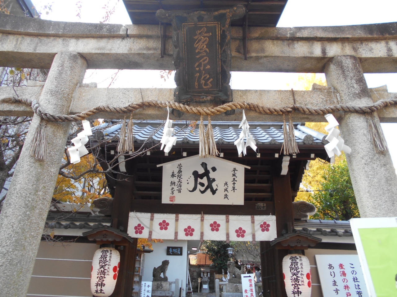 京都御所の西側にあります。こじんまりとした神社です。学業成就、がん封じや良縁のご利益があります。菅原道真が初湯に使ったといわれる井戸がありました。ここで生まれたのかなと思いました。神社内に参拝方法などの丁寧な説明書きもありました。