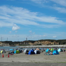 天気のよい週末だったこともあって、海水浴に来ている人が多くいました。目の前には屛風ヶ浦が広がる海水浴場でした。この海水浴場の横から屛風ヶ浦の遊歩道に入ることができるようになっていました。駐車場も広くて、無料で便利でした。