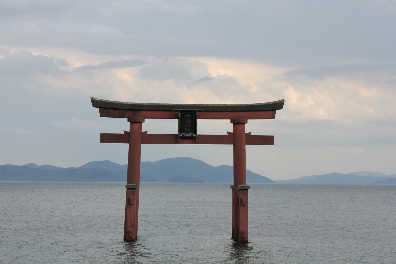 国道161号線沿いにあり、広島の厳島神社のように、琵琶湖に浮かぶ鳥居が印象的です。