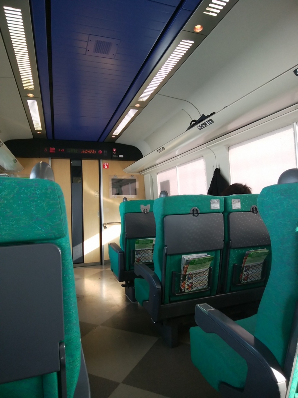 札幌駅から旭川駅まで利用しました。約1時間半で着きます。6両編成で、真ん中の3か4両か指定席でした。