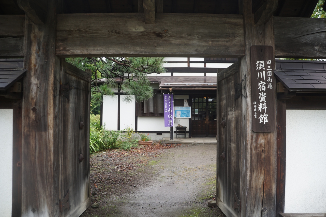 須川宿資料館は、たくみの里から歩いて訪ねました。しかし、その道は旧三国街道なんでしょうか。幅もあってまっすぐな道。とんでもなく立派な道です。
