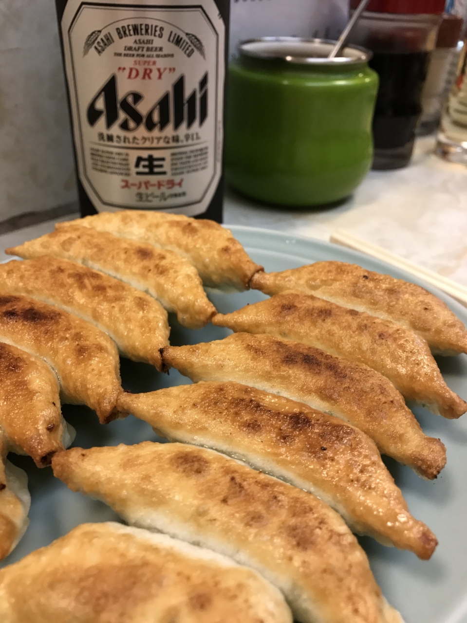 浅草駅から徒歩5分の餃子の王さま。1階は細長いカウンターが10席弱の小さな店内です。