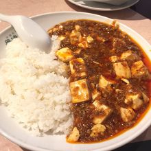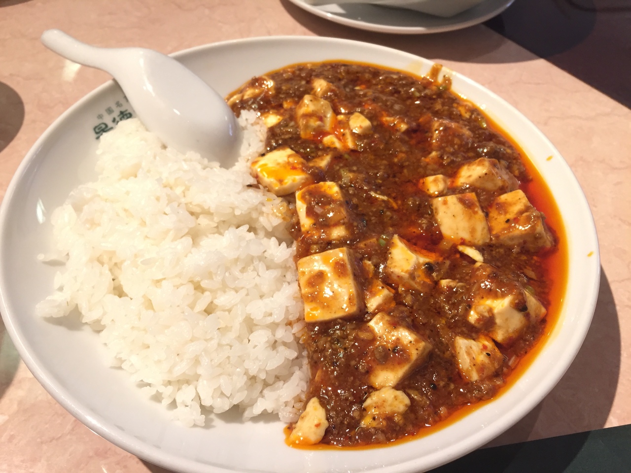 ランチの四川マーボー豆腐のごはんがけ、かなりピリ辛でしたが、八角ではなくサンショウと塩が効いている辛さ。しかもすごい量でした!