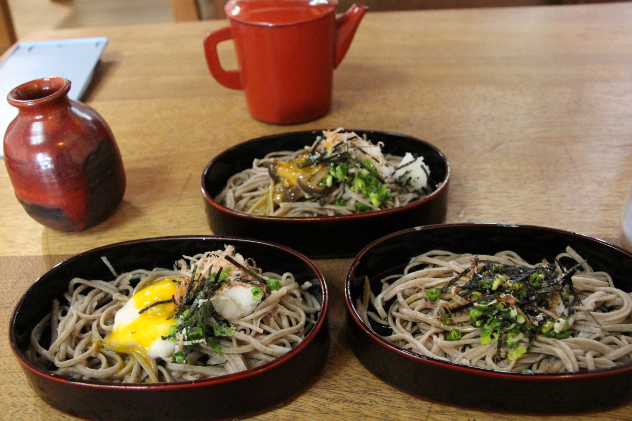 三色蕎麦(1080円)をオーダーしたら、丁寧に食べ方まで教えていただきました。