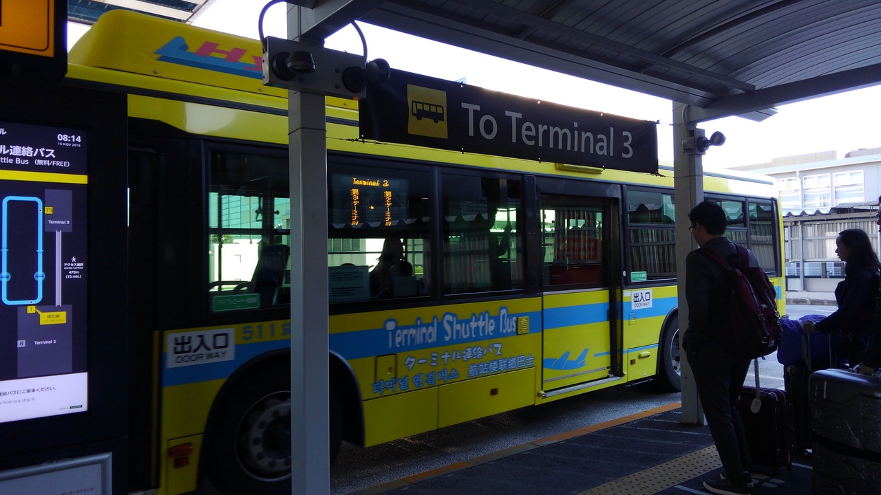 ターミナル間の移動にいつも利用します。無料バスで、次から次へと来ます。