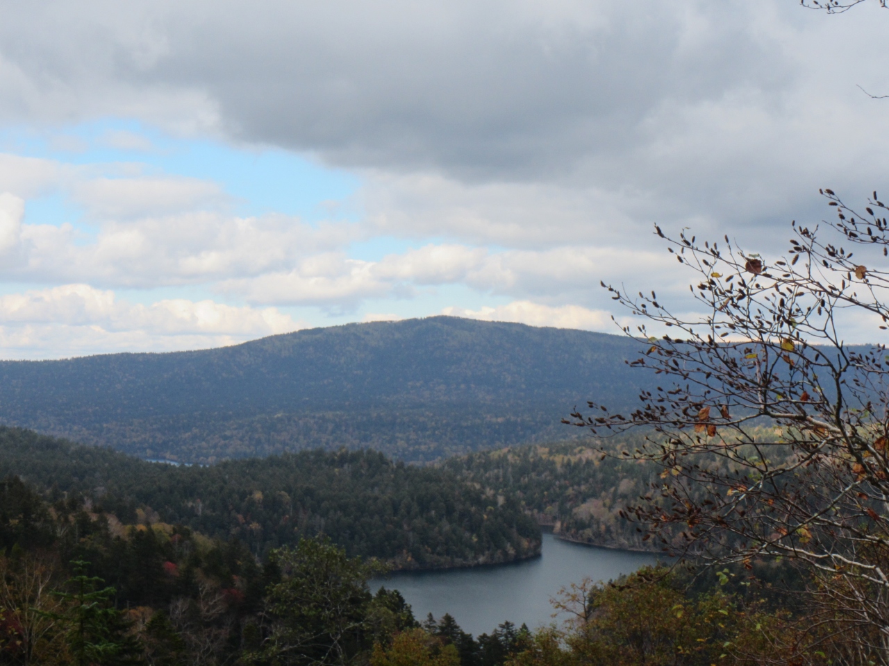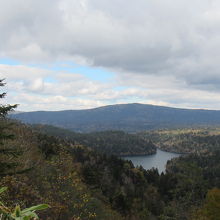 樹海に囲まれ、秋は紅葉が美しいかと思いきや、意外と針葉樹も多くてまだら模様な感じでした。