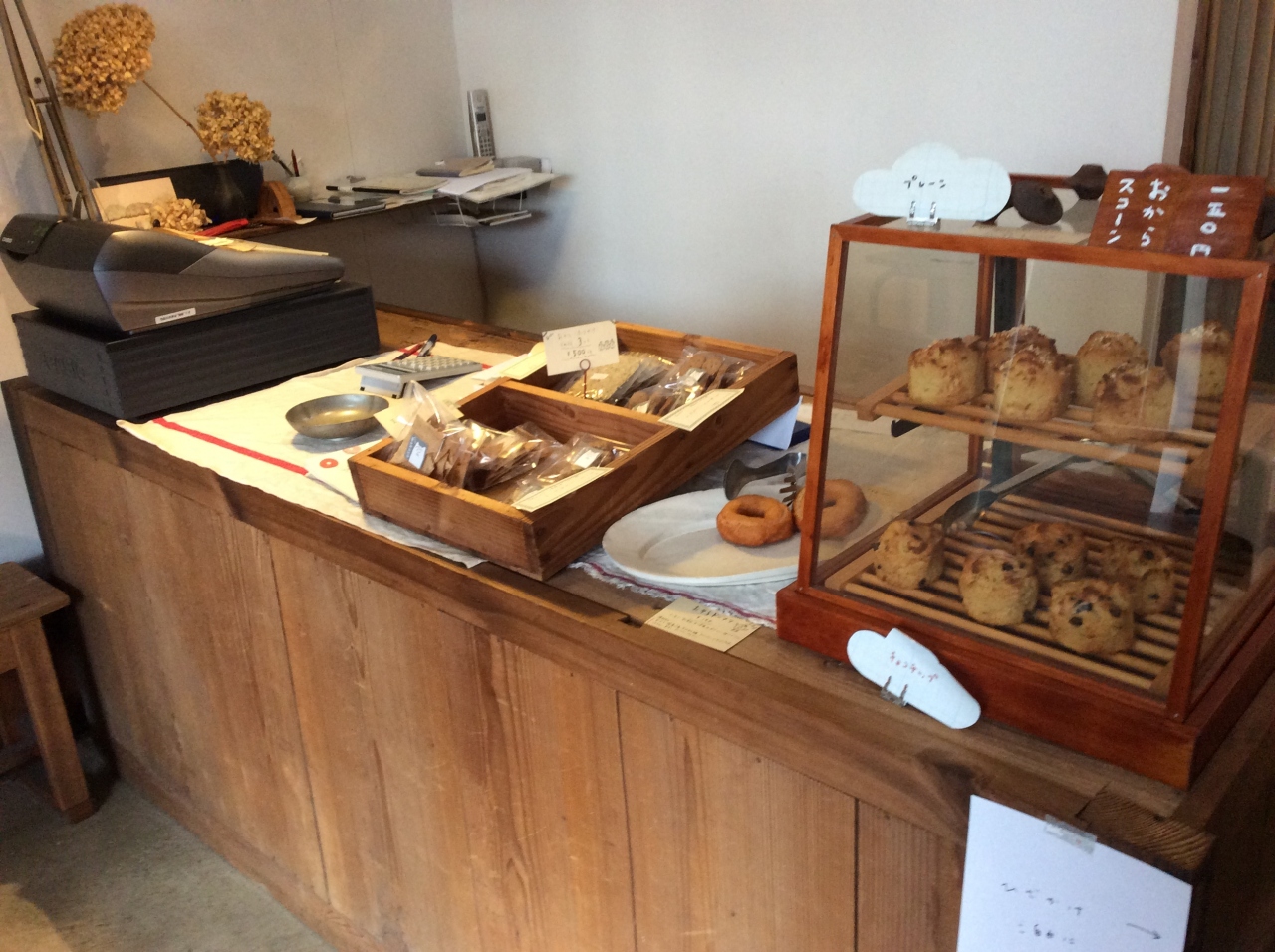喫茶スペースは女子のおしゃべりがうるさい。おからや豆乳たっぷりのアップルケーキは甘さ控えめでくどすぎず良い。