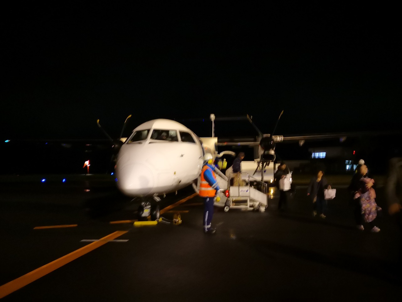 バス位のサイズで、人数もコンパクトな飛行機で来ました。