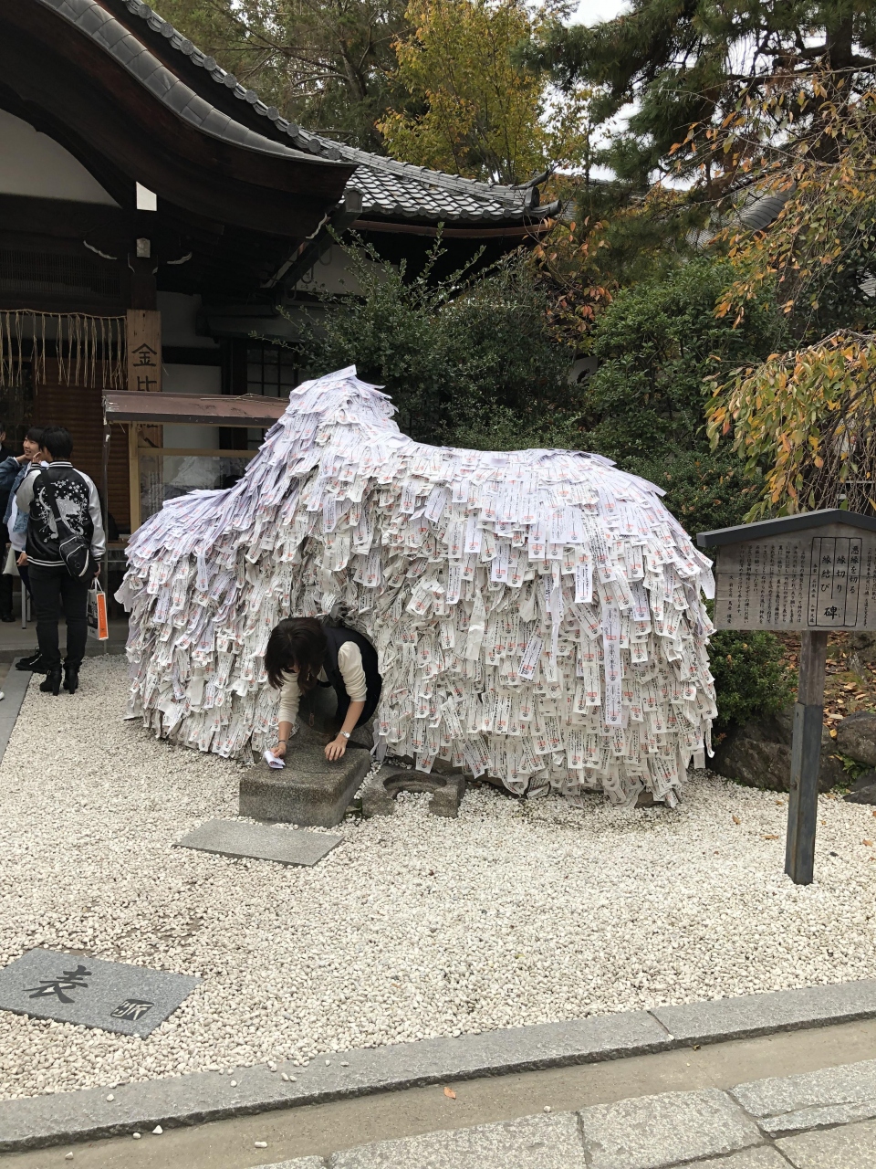 よく写真で見る縁切り縁結び碑は思ったよりも小さいですが、一面にお札が貼られていて独特な雰囲気がありました。