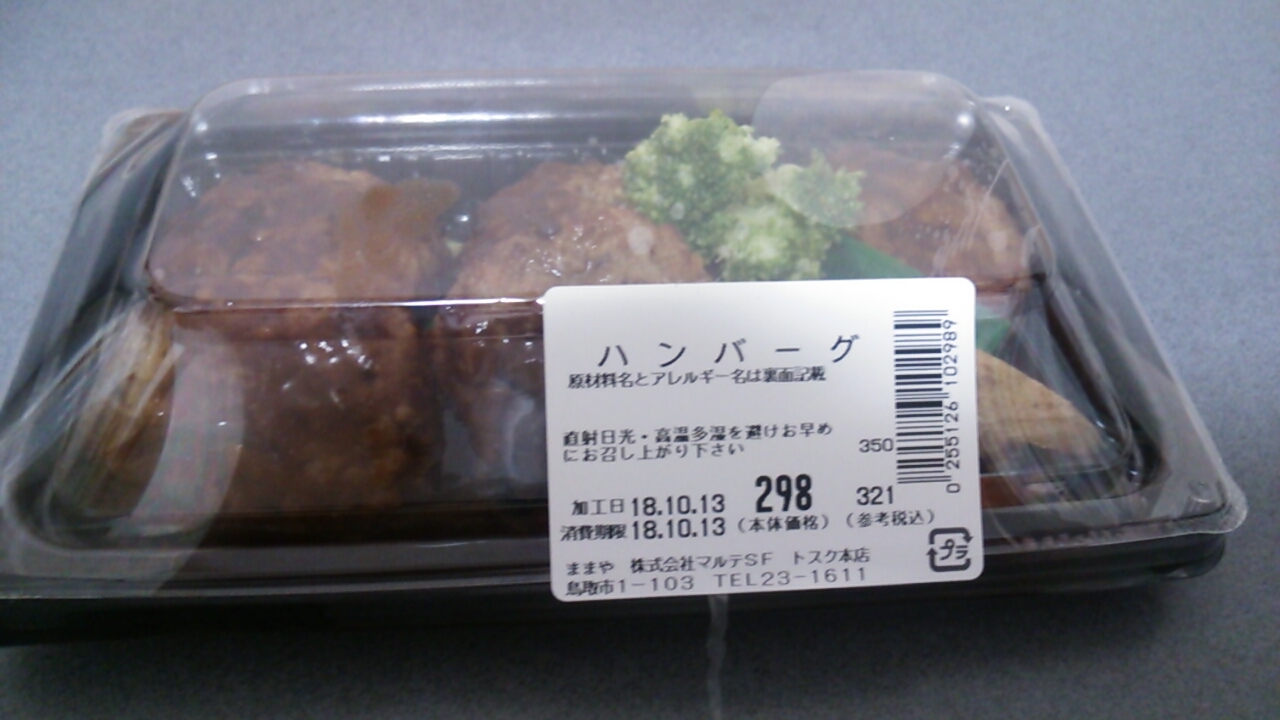 弁当の他、ハンバーグ・卵焼き、さらには煮物・サラダ類の取扱いがあり、そのうち今回は「ハンバーグ」についてです。