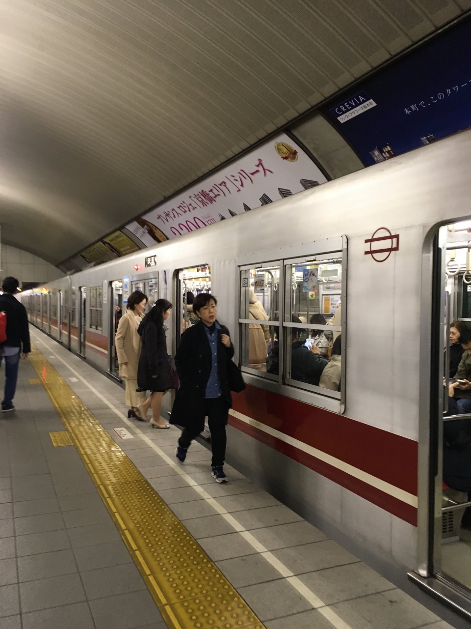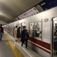 大阪で一番便利な電車だと思います。地下鉄ですが、東京でいうところの山手線と銀座線と丸ノ内線をあわせたような感じで、ここの沿線上に主要なホテルや繁華街なども揃っています。常に混雑しているので、全線通し運転をしない中津行きや新大阪止まりの電車もあります。