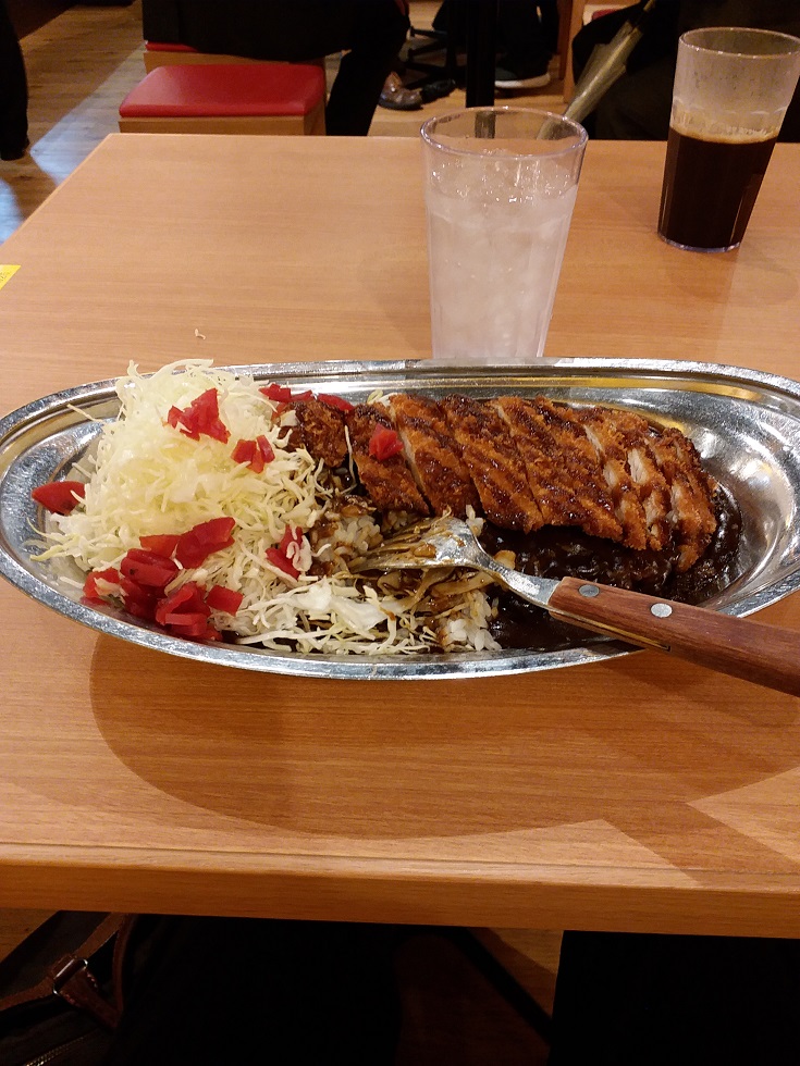 出張で神田界隈に逗留した際、神田駅近く「ゴーゴーカレー 神田駅南口スタジアム」を利用しました。改札口を出て正面のビルの地下に入ると、巨大がゴリラの看板が。金沢で有名なカレーチェーンで、最近マスコミでも取り上げられるなど快進撃を続けています。ここの特徴は、カレーがとても濃厚で、スプーンではなくフォークで食べるスタイルであることです。コーヒもついてお得でした。