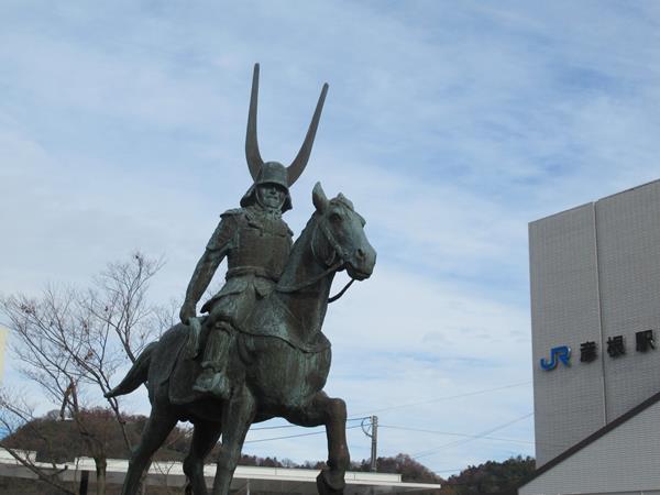 彦根駅前に立つ初代彦根藩主。勇猛果敢な徳川四天王の一人