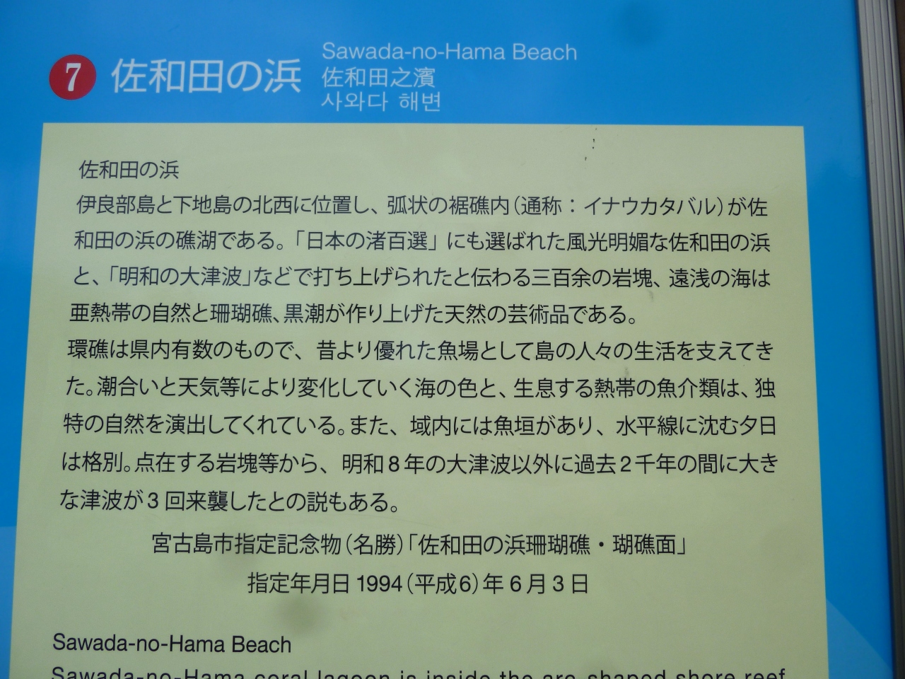此処の遠浅の海岸線には津波石と言われるの江戸時代の明和年間に襲った津波で打ち上げられた岩があちこちに鎮座しています。