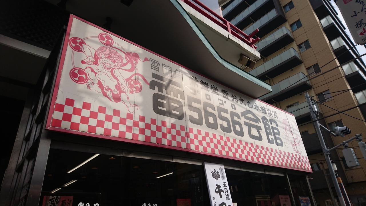 浅草寺北側あたりの言問通り沿いに雷5656(ゴロゴロ)会館がありました。お土産物売り場だけでなく、食事処や宴会会場などもあるので浅草観光の拠点として利用できます。今回は行きませんでしたが、別館では「雷おこしの製造体験」もしているそうなので、是非一度行ってみたいと思いました。