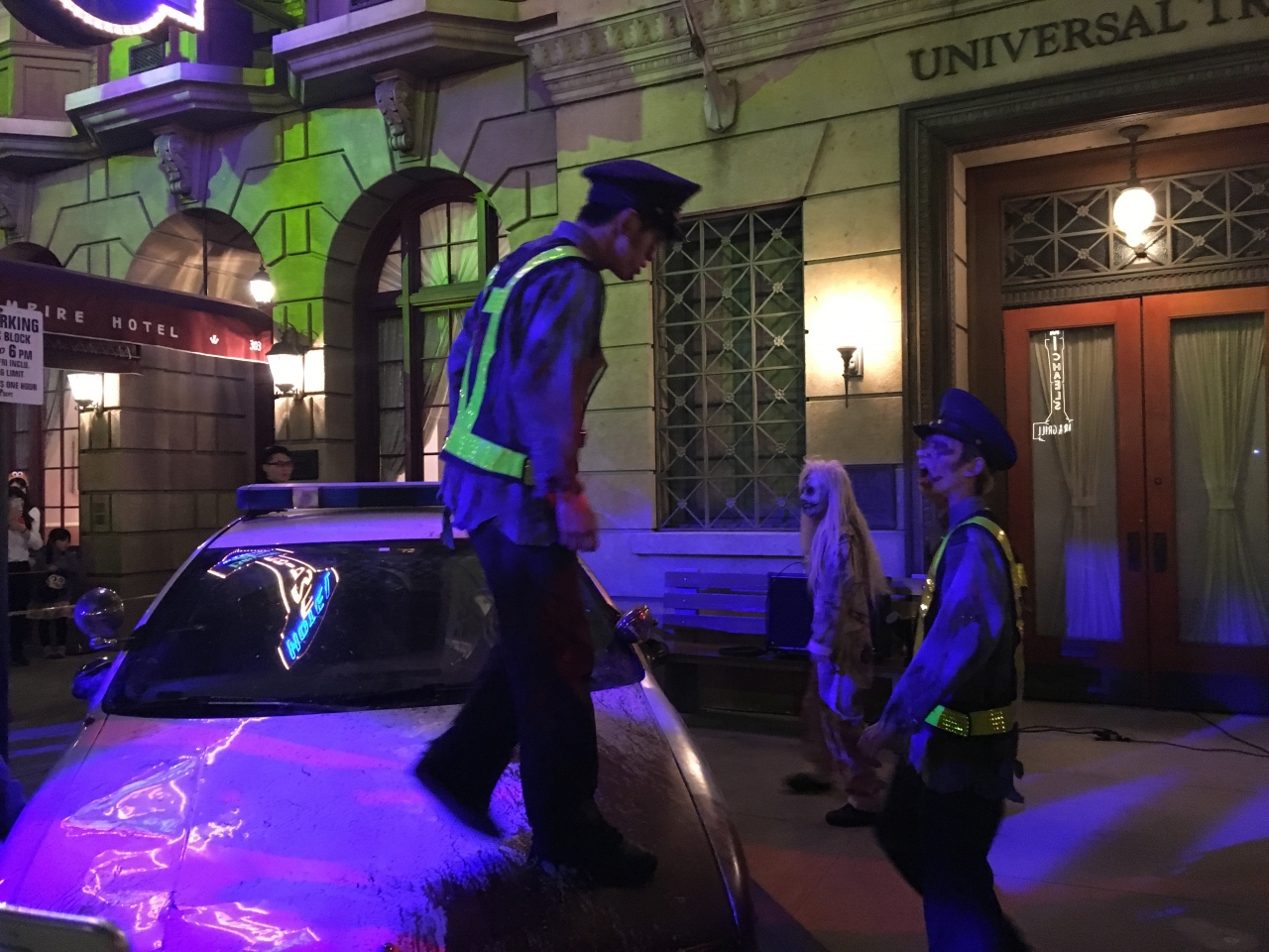 18時から始まるとのことでしたが、その時間帯はゲストが多すぎて、ゾンビ達は囲まれた場所でパフォーマンスするという感じでした。なので、道を歩いていても出会えませんでした。