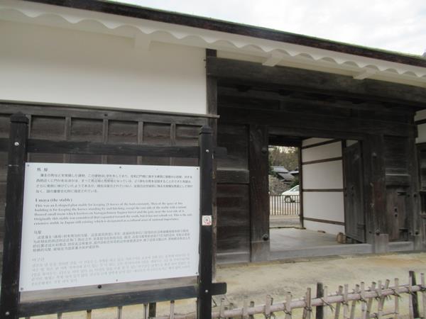説明書きによると「全国の近世城郭に残る大規模な馬屋として例がなく」と書かれていました。国の重要文化財に指定されています。