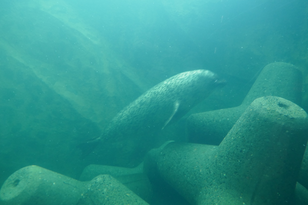 あざらし館では,アザラシが生き生きと水中を泳いでいる様子を見ることができます.