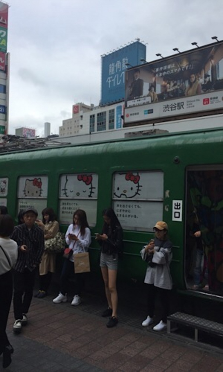 渋谷駅前のハチ公像がある広場にある東急線の廃車両です。