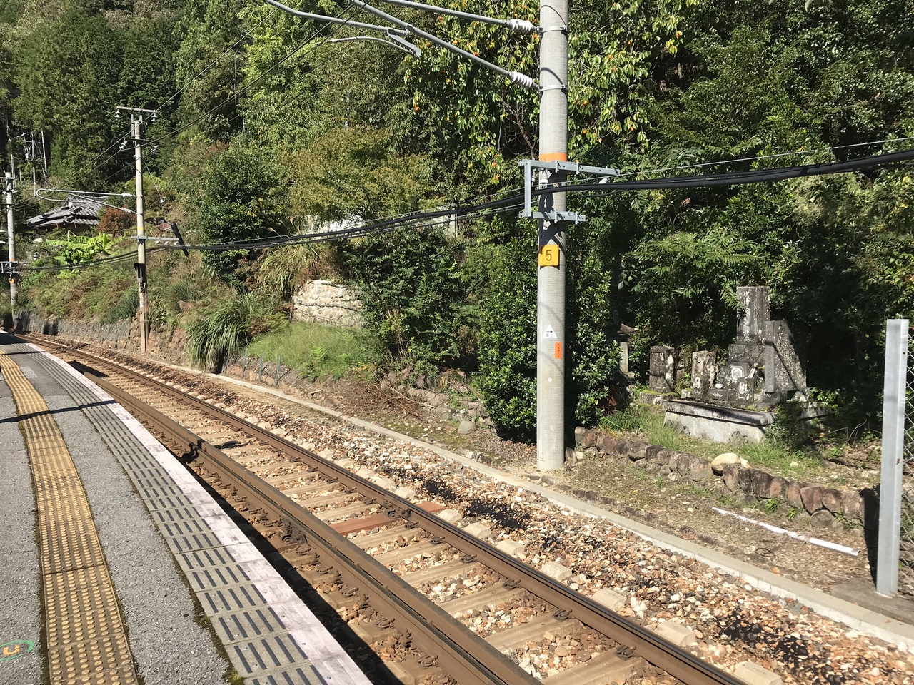 駅ホーム前には廃屋が一軒と、少し離れた所には墓が並んでいた。