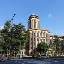 名古屋城を散策した後、東門を出ると、「名古屋市役所本庁舎」が見えました。一見、クラシカルな洋風建築ですが、時計台の最上部が名古屋城を象っていました。落ち着いた色彩も良く、今まで見た全国の市庁舎の中でも、印象に残るもののひとつでした。