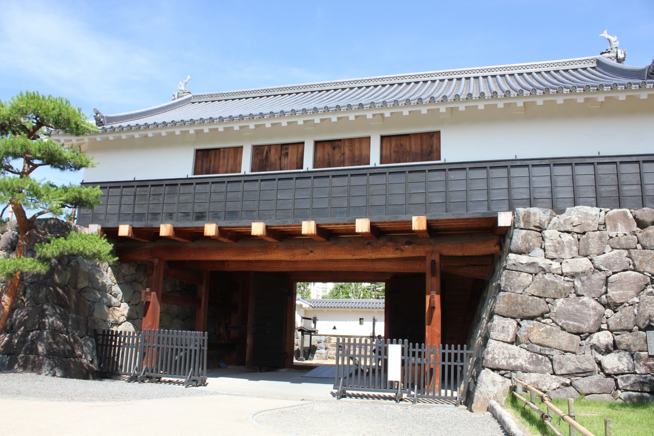 松本城の太鼓門は、一の門(櫓門)と二の門(高麗門)の2つの門がカギ形に配置されていて、更に大きな石垣と高い塀で守りを固くしていることがわかります。