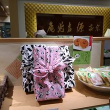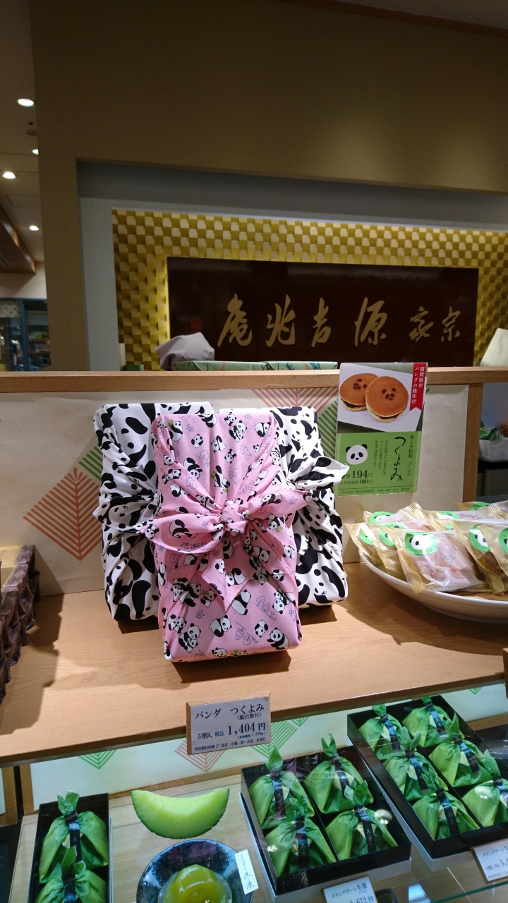 「つくよみ」という栗入りのどら焼きが人気で、この店舗では特別にパンダのパッケージになっています。さらに生地にはパンダの焼印がついていて、とてもかわいいです。