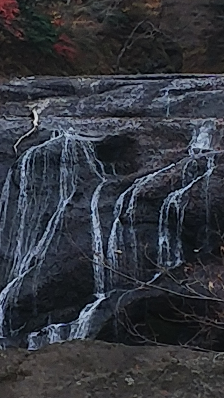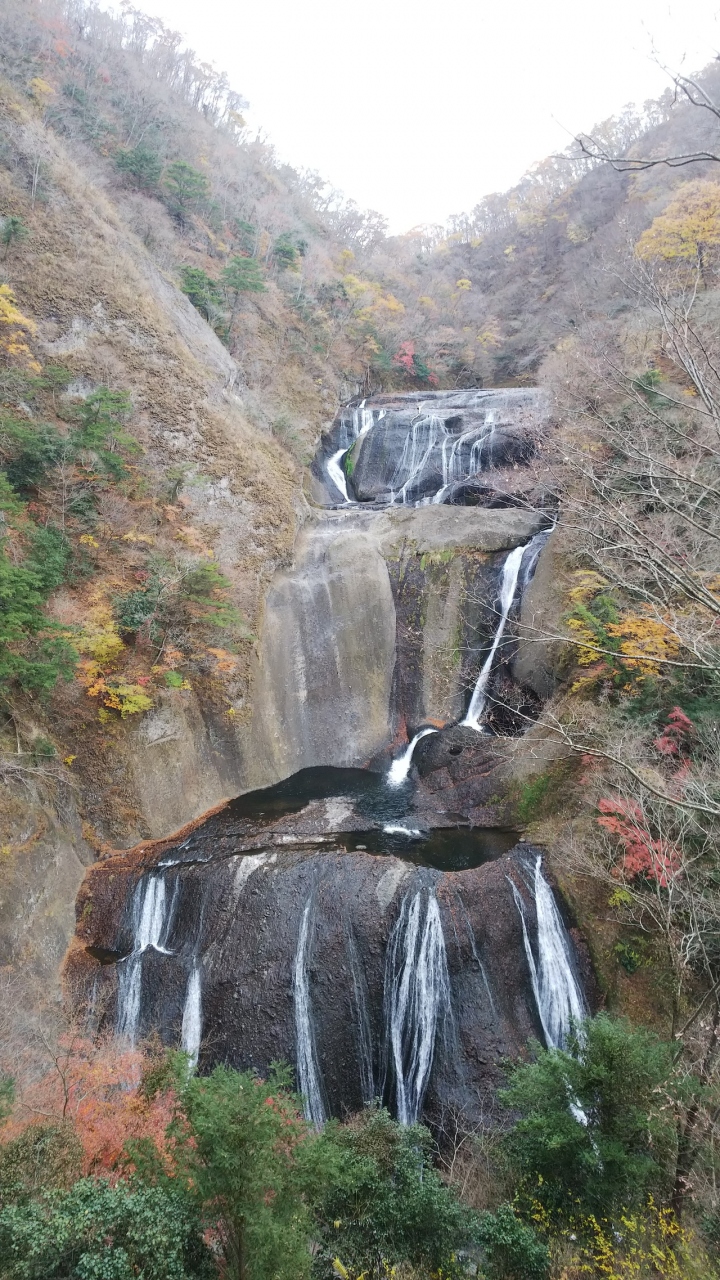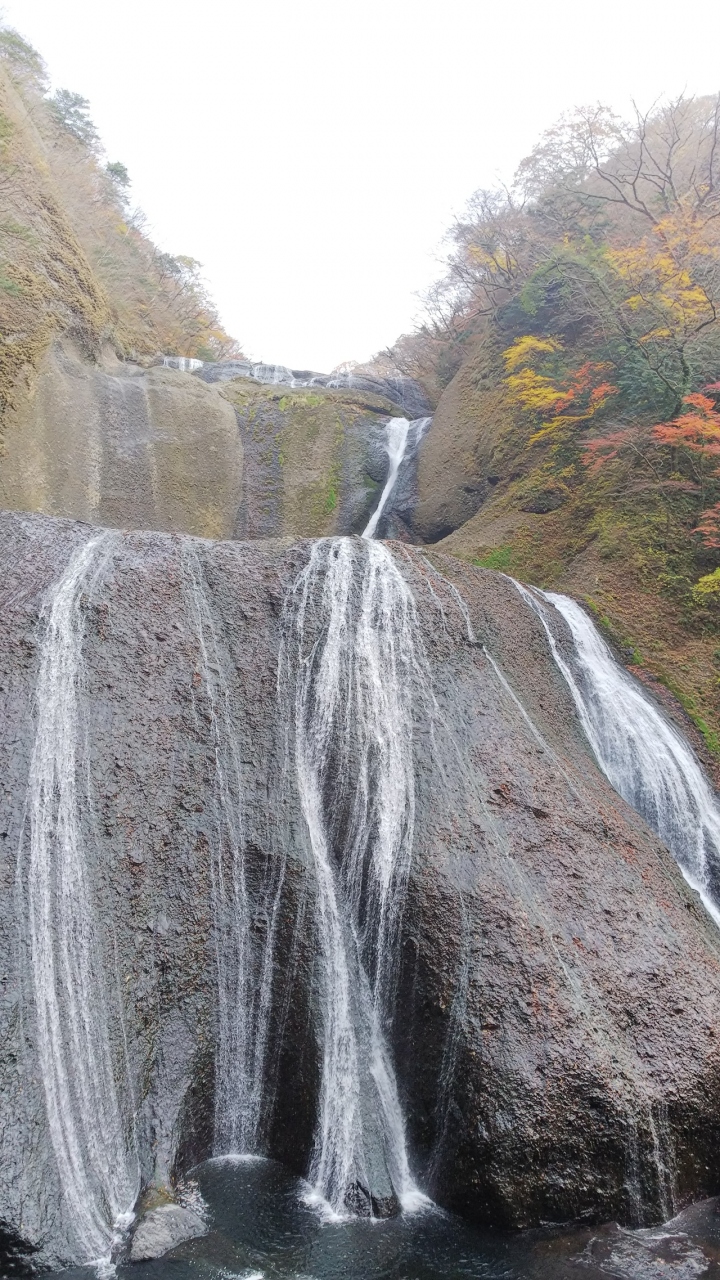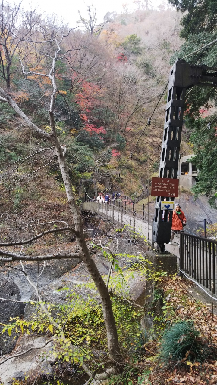 紅葉には少し遅かったのですが、まだキレイでした。滝に行ける場所も以前より広くなったそうで紅葉最盛期を外れた平日だったせいか混雑もそれほどなく、ダイナミックな、滝をゆっくり眺めることができました。ちょっと揺れる吊り橋を渡って見るとまた違った眺めでいいです。滝に1番近くなった所で滝の中にあるハートを見つけるとラッキー。