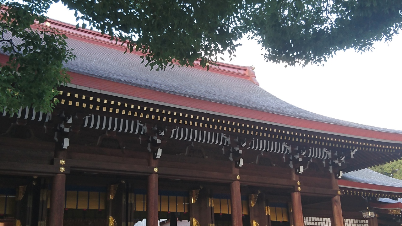 平日に明治神宮にお参りしましたが、相変わらずたくさんの参拝者がいました。拝殿は、外拝殿、内拝殿、本殿の並びとなっており、一般参拝客がお参りできるのは外拝殿まででしたが、立派な社殿に神々しさを感じました。銅板屋根葺替工事中とのことでしたが、曽於拝殿から見る限りは工事中には見えませんでした。
