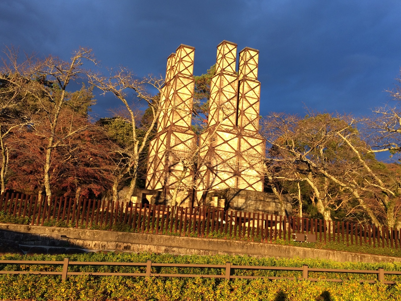 下田街道を走行中に「韮山反射炉」の案内板を発見。教科書に書かれていた反射炉に興味が湧き、街道から離れた場所ですが寄ってみることにしました。カーナビに誘導され駐車場に到着。すると目の前に煉瓦造りの大きな反射炉が見えるではないですか。すでに16時過ぎで先を急ぐ必要もあってじっくりと見ている時間もなく、入場料を払うことなく外からこの施設を眺めましたが、あまりにも大きく煙突が高いため、それだけでも全体像がよく分かりました。