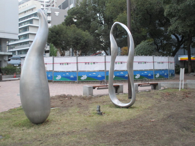 市役所の横にあります。ヨーロッパには結構花時計ってありますが、日本にはあまりないので、一度見ておこうと思って行きました。なんと残念ながら工事中でした。シートが全体にかけられていて、周りのオブジェしかみえませんでした。工事中は何も見えません。工事が終わったらまた行こうと思います。