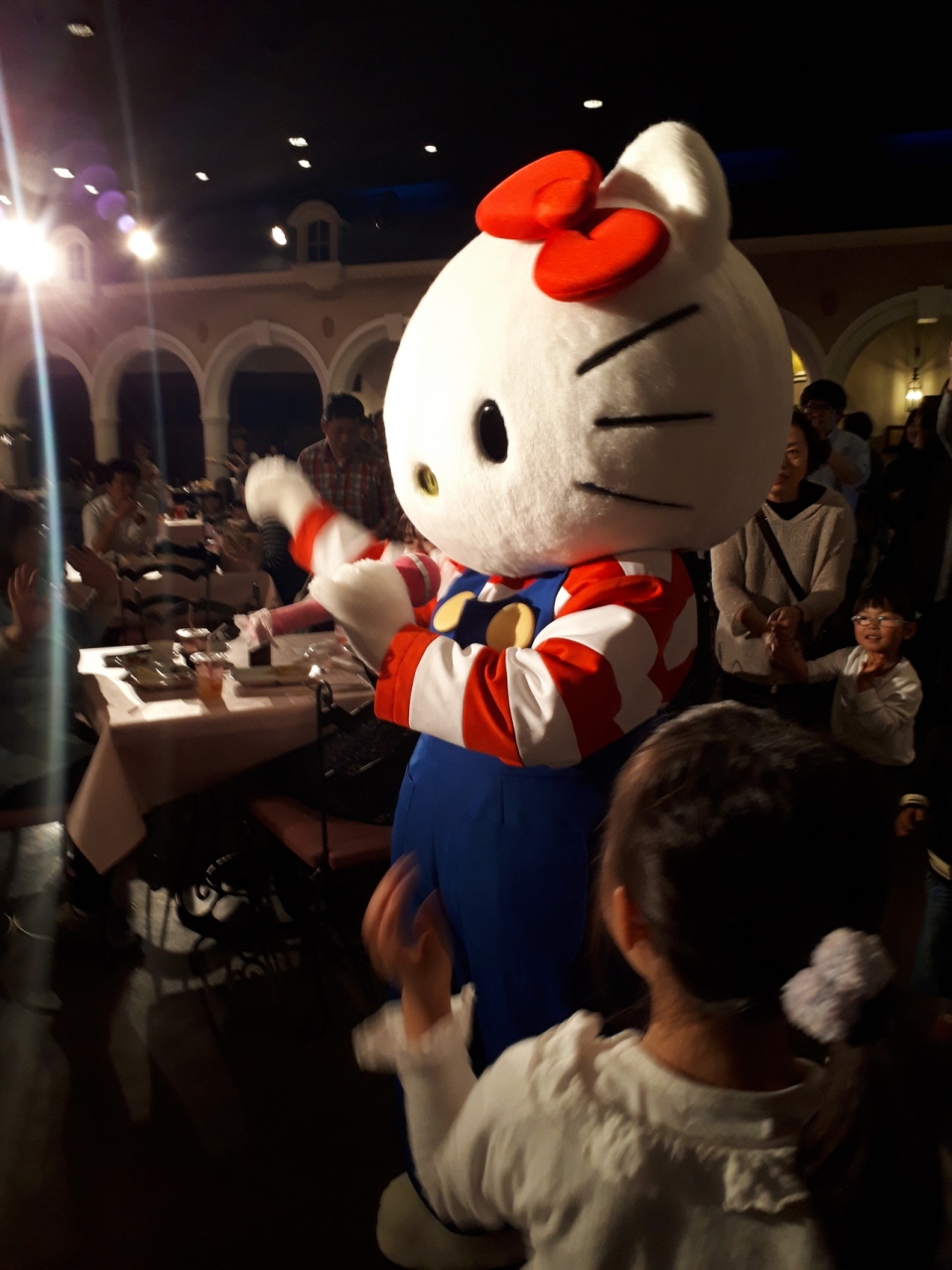 レストランはキティちゃんに会えるところにしました。かなり近くで見ることができて子供も興奮!