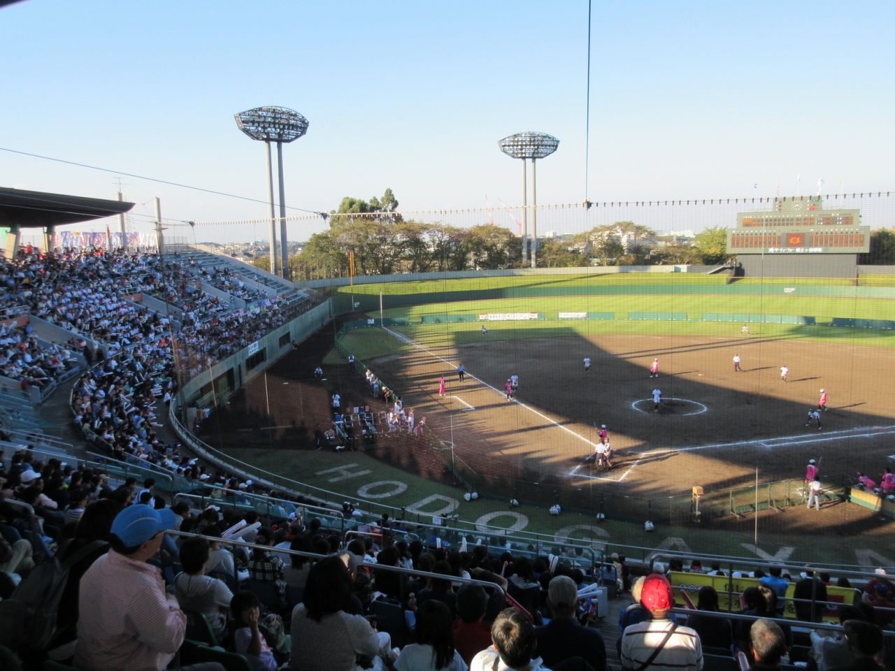 地方の球場です。昨今の球場は、ドームだったり、マウンドが人工芝や整備された芝だったり、きれいになってますが、ここはかつての甲子園のような土です。選手が走ると土が舞い上がって、土の匂いがするようです。これぞ球場といった感じです。