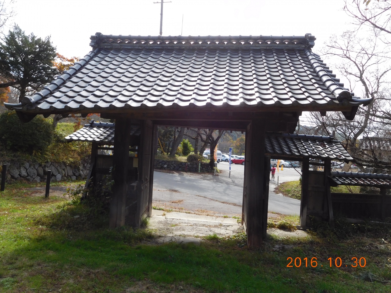 高遠城址公園には駐車場がいくつかあるのですが、大型バスも停まれる大きな駐車場の道路はさんだ向かいにこの「高遠城大手門」はあります。